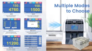 Dotée d’un écran tactile couleur TFT-LCD de 3,5 pouces, l’interface est intuitive, personnalisable et facile à utiliser. Avec une vitesse de comptage allant jusqu’à 1500 billets par minute, une grande capacité de trémie et un empileur efficace, elle répond parfaitement aux besoins des banques, commerces, stations-service, supermarchés et bureaux de change.