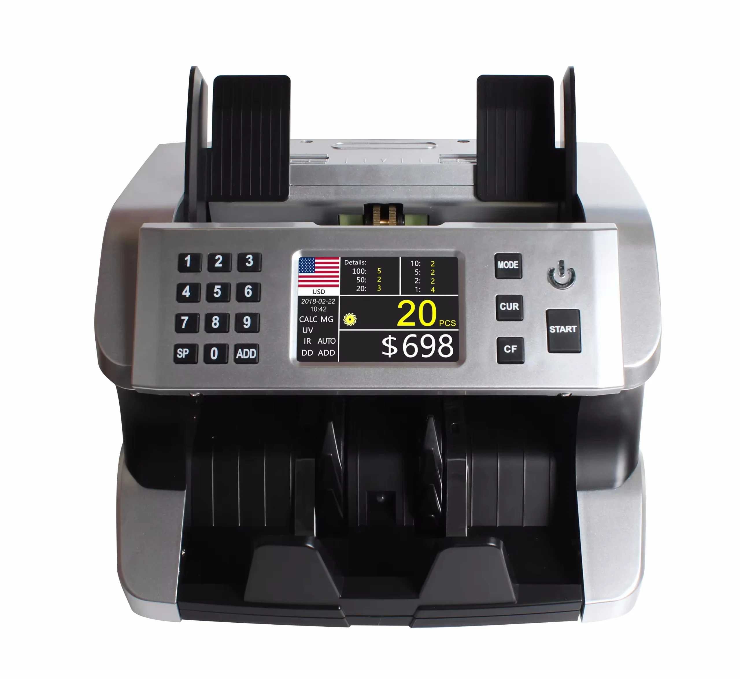 - Vitesse de Comptage : Ajustable à 900, 1200, ou 1500 billets par minute.